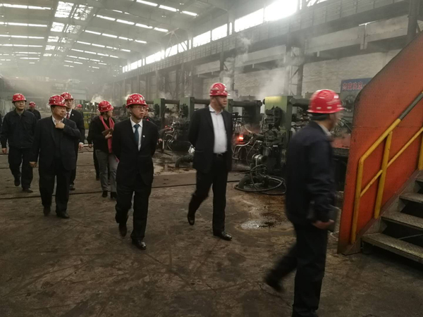 众博线上登陆董事长孙寿宽、总裁赵松一及公司各副总陪同王旭行长一行,参观嘉晨营钢轧钢厂