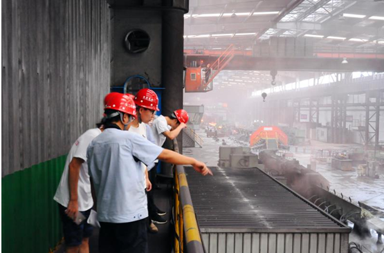 同学们在一边参观,一边通过师傅现场讲解,才真正了解到轧钢的工艺流程并且知道了钢板到底是怎么形成的。赤红而超高温的钢板在生产线上快速运行,最后被切割成一段一段的,经冷水冷却后,这些基本板材,有的进入轧机进行轧制后做成钢材卷板。当天,在高温又环境恶劣的再热轧现场中,令人有种“蒸桑拿”的错觉。虽然大家早已汗流浃背,但即便如此,同学们仍是保持精神,认真聆听师傅的讲解。当大学生们亲眼目睹一道道工序的顺利进行,直到钢材一批批的成型,不由发出阵阵掌声,既为工人师傅的精湛工艺和吃苦精神所感染,更深刻地体会到制造企业为社会主义生产力作出的贡献。