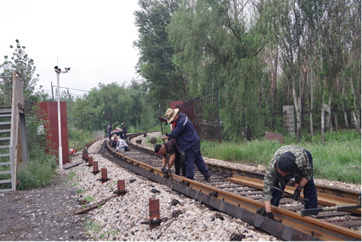 铁路专线全长1730米,全部维修、维护工作都由工务组十几名工人完成,此次维修工作,不仅要保证列车通行安全,而且还要节约成本,要让每根钢轨、每个螺丝钉都发挥它有效作用。一条钢轨重达1吨,更换工作全部由人工完成,而此次更换的钢轨,曲径弯度特别大,更换难度可想而知,在此困难情况下,工人们表现出极大耐心、细心,用他们娴熟的技艺,提前半小时出色地完成更换抢修工作,保证了列车正常通行。
