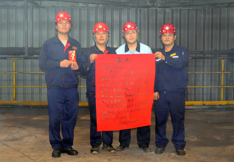 集团副总裁孙朝英及轧钢各分厂厂长等到场祝贺