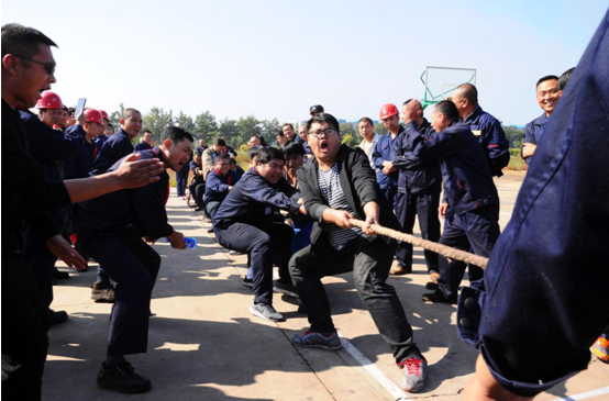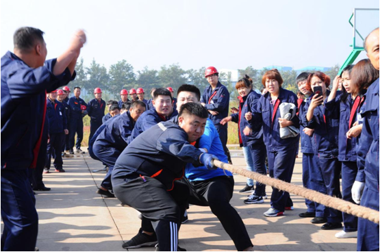 比赛场地设在办公楼门前停车场。由各车间为单位,组成的12支代表队参加了比赛,其中男队8支女队4支。比赛采用三局二胜制淘汰赛,每队参赛人员 10人,按抽签分组决定比赛顺序。参赛队员们个个摩拳擦掌、士气高昂,随着裁判员一声哨响,比赛正式开始。队与队之间是一场力量和技术的较量,上场的两支参赛队伍紧握拔河绳,心往一处想,劲往一处使,拼劲全力,展开了实力拉锯战。赛场下,啦啦队员们为自己支持的队伍加油鼓劲,助威声一浪高过一浪。队员们在赛场上的精彩表现搏得了现场观众的阵阵欢呼,号子声、呐喊声,此起彼伏,高潮迭起,气氛热烈。