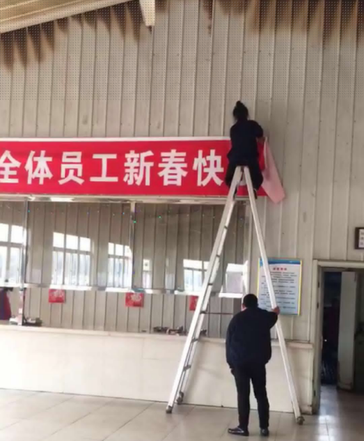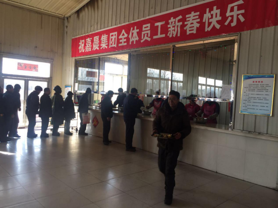 当璀璨的烟花在嘉晨上空朵朵绽放之时,公司领导班子一行又来到食堂看望了仍在工作的厨师、服务员及就餐职工。贾总向大家拜年!并感谢食堂员工为保证集团燃化职工度过春节而精心准备的可口、精美菜肴。厨师长代表全体厨师及服务人员,感谢公司领导的关怀,并表示,要发扬不怕苦、不怕累的嘉晨精神,为了全体职工能过好春节而努力工作,食堂员工耿艳为了给不能回家过年的职工营造家的感觉,爬上高梯,精心打扮食堂,让回不了家的职工感受到家的温暖、嘉晨的爱意!