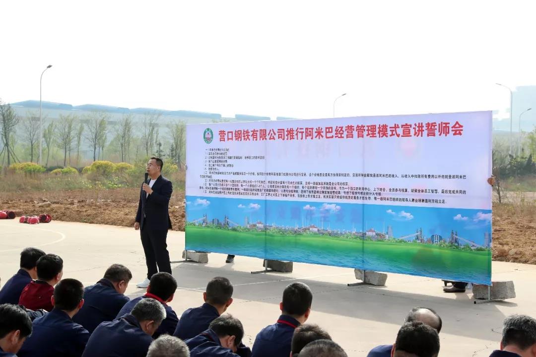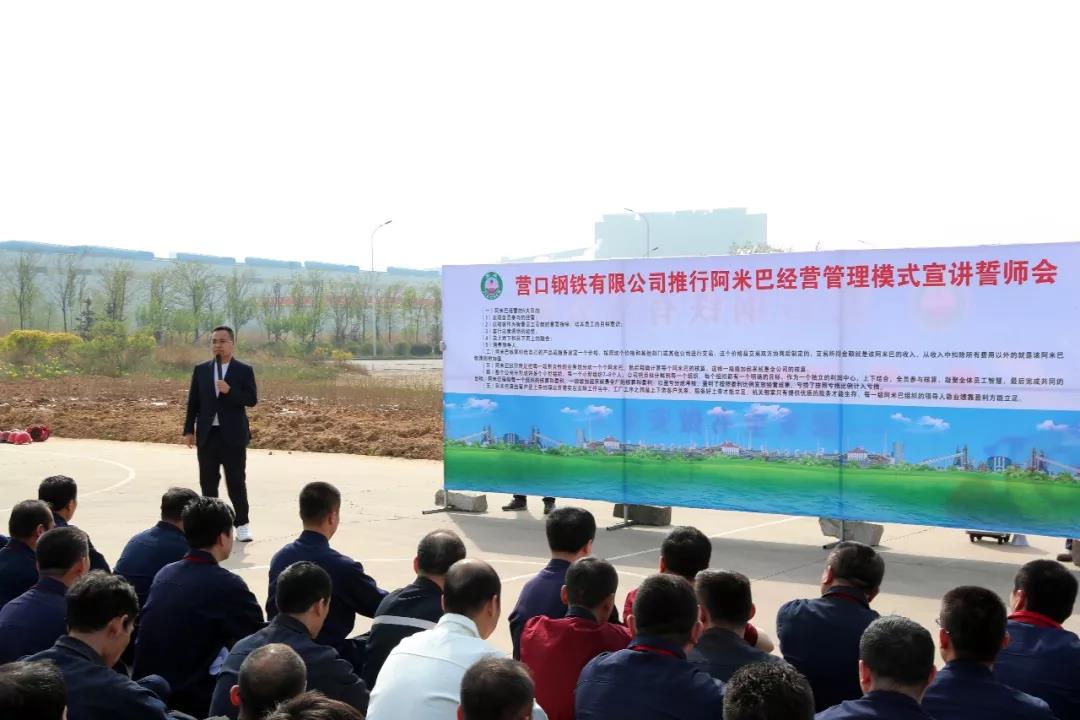 2019年5月3日下午,营钢公司举行推行阿米巴经营管理模式宣讲誓师大会,集团总裁孙朝英、集团副总经理左文朝、营钢公司副总经理李朔等公司领导,及各厂厂长、各部门领导,阿米巴小组负责人等388人参加。