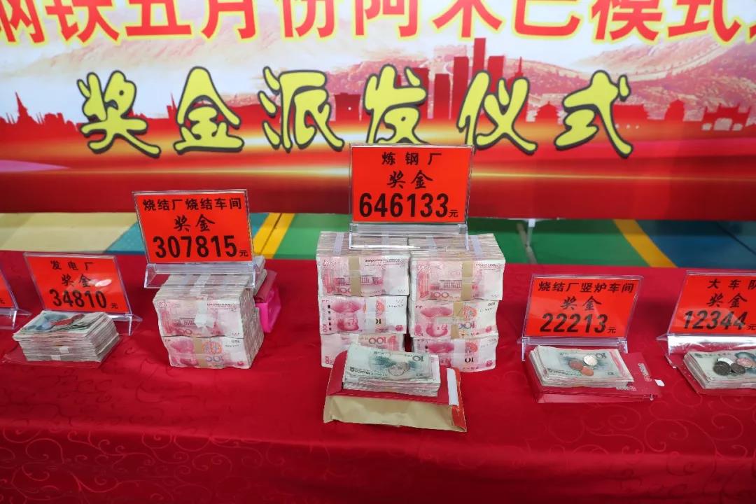 按照阿米巴经营目标考核,炼钢厂本月派发奖金646133元、烧结厂烧结车间派发奖金307815元、竖炉车间派发奖金22213元、轧钢厂派发奖金21132元、发电厂派发奖金34810元、动力部派发奖金12133元、运输公司派发奖金12344元。获奖单位领导逐次上台领奖,一个字“爽”!!