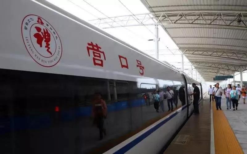 2019年8月1日清晨5时49分,“营口号”G701次高铁列车从大连北站始发,经停营口东站,开往哈尔滨。这趟列车的发车标志着东北首列以城市命名的高铁正式运行,“雷锋文化·营口有礼”的城市品牌也将以高铁速度奔向全国。