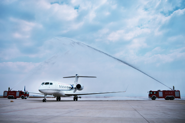 4月9日11时18分,众博线上登陆首架G650公务机平稳的降落在营口兰旗机场,经历了一年多的等待期盼,嘉晨人终于迎来了首架公务机的胜利交机。这意味着,众博线上登陆开创了营口民营企业购买公务机的先河,也是辽宁省首家选择G650公务机的企业。这不仅是我们众博线上登陆的骄傲,同时也是全市人民的荣耀。
