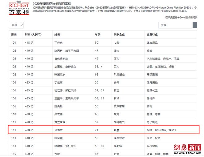 2020胡润百富榜揭晓 众博线上登陆董事长孙寿宽再度入选